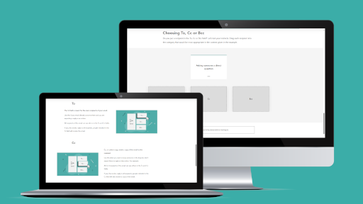 We have distilled important information into an incisive ten-minute course that teaches staff how to avoid critical errors when sending emails. Learners are tested at the end of the course to see if they can apply their knowledge to real-life scenarios.